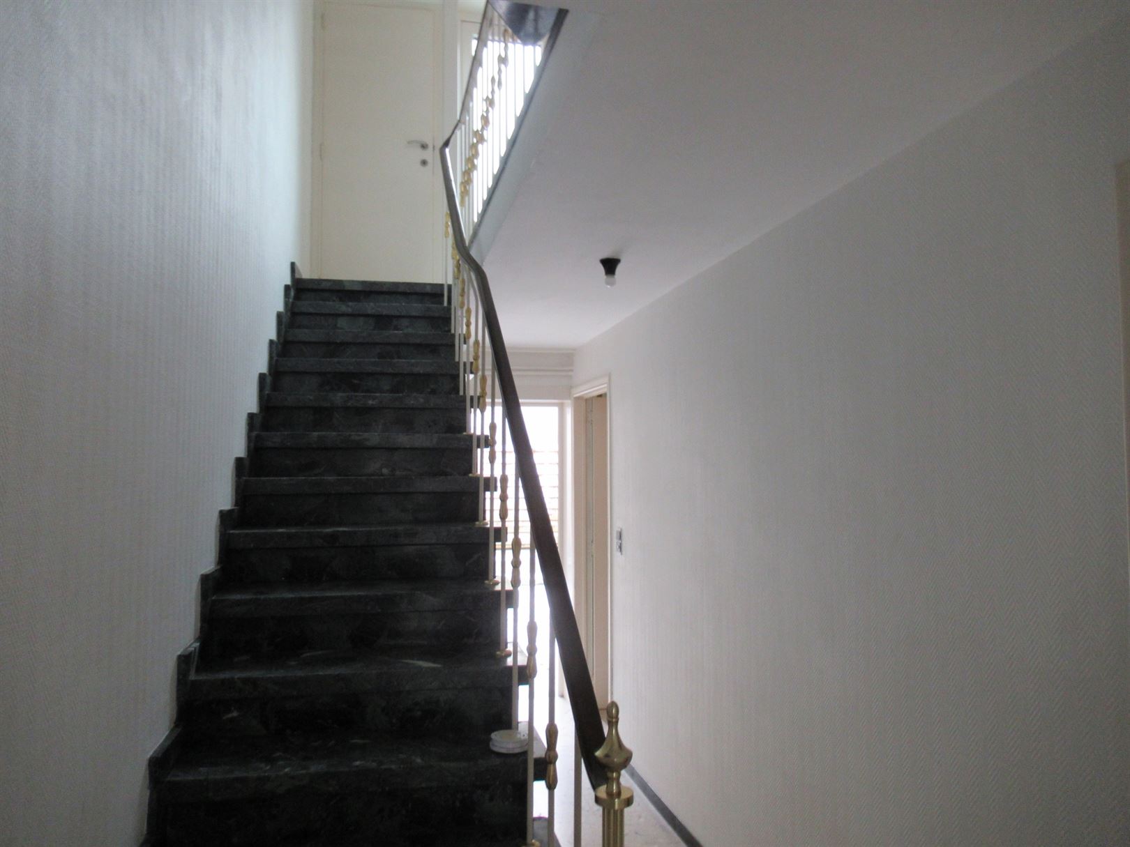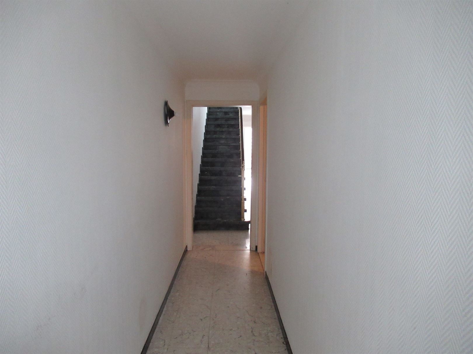 Dit pand beschikt over een garage toegankelijk met automatische poort, van hieruit komen we in de inkomhal terecht. Op dit niveau vinden we tevens een handige berging/wasplaats. Via een prachtige marmeren trap bereiken we het hart van de woning op de eerste verdieping. Hier vinden we een ruime living en de keuken. De twee slaapkamers en de badkamer liggen op de derde verdieping. Extra bergruimte is er zowel te vinden in de kelder als op zolder. Verwarming op gas.
